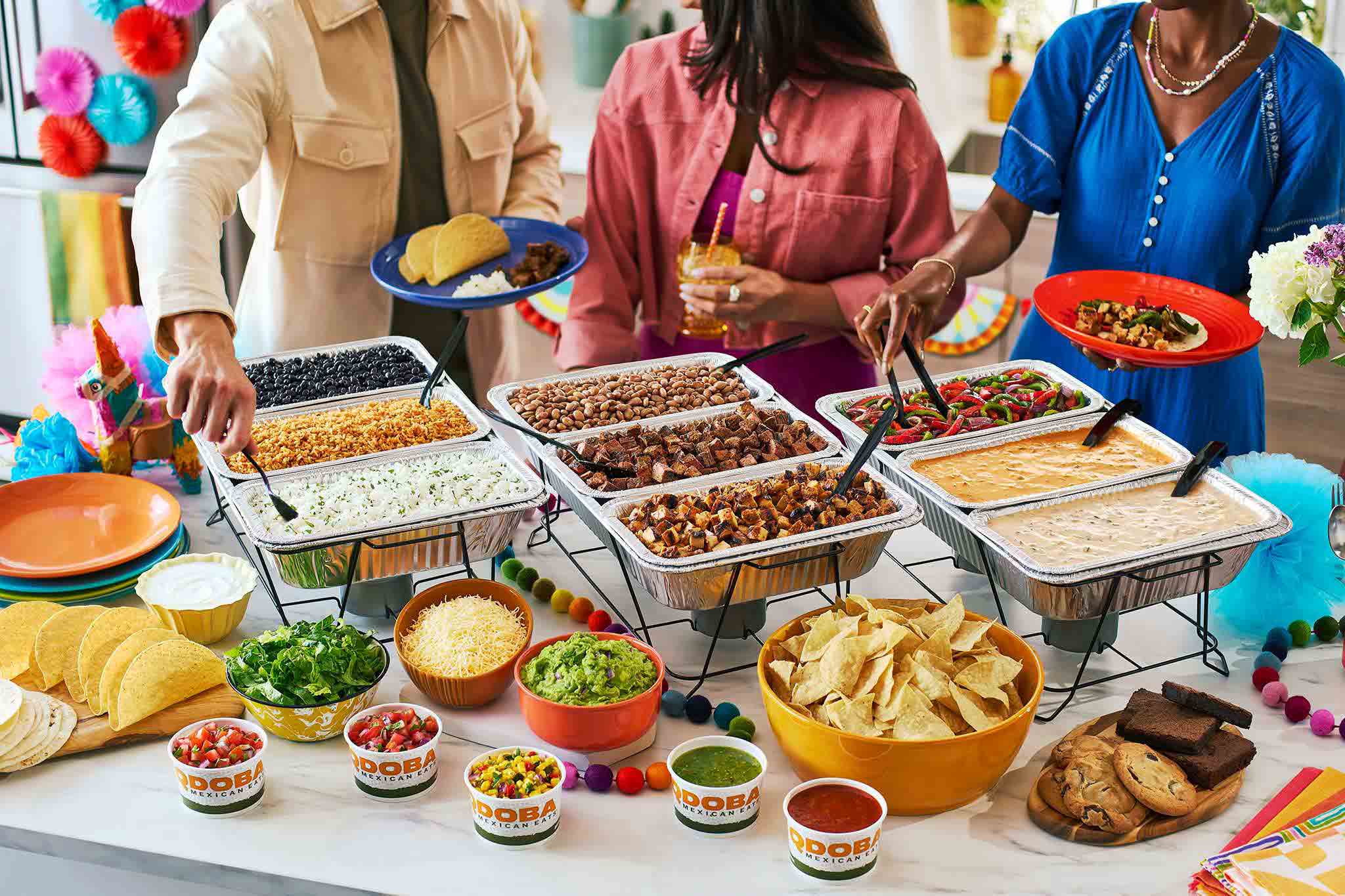 QDOBA Catering offers a customizable spread ideal for any event or appetite. Choose from our hot bar options and let your guests build their own burrito bowls and nachos, piled high with a variety of tasty toppings. Or select our convenient box lunches for a meal packed with flavor - and dessert!